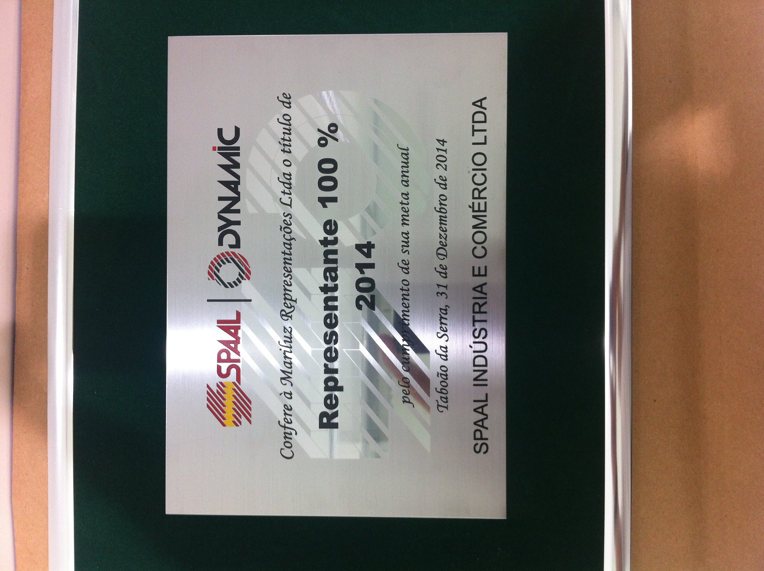 A MARILUZ REPRESENTAÇÕES foi agraciada durante a Automec/2015 no estante da SPAAL/DYNAMIC com a placa de “Representante 100% 2014” por ter atingido todas as metas estabelecidas pela representada.