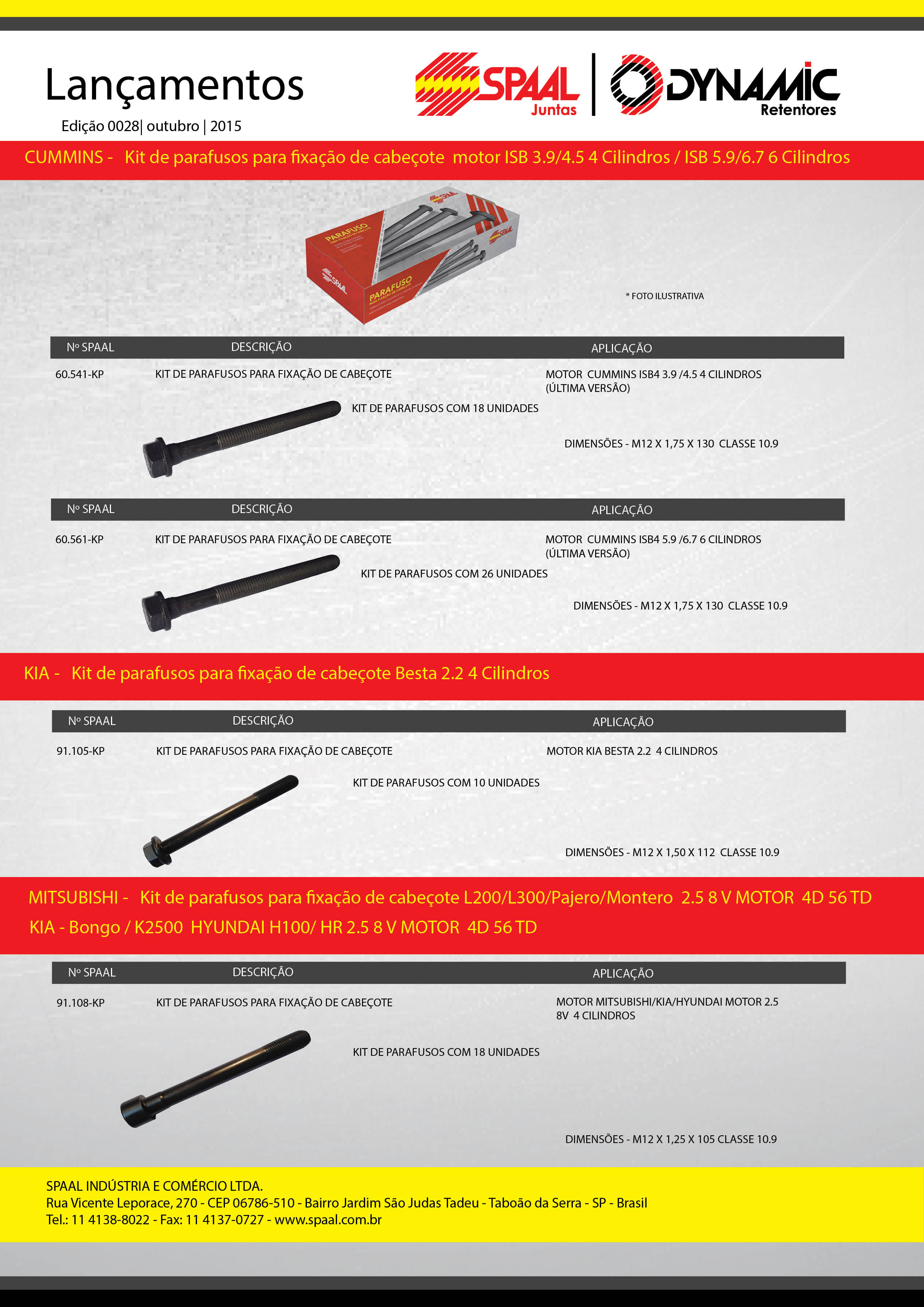Lançamentos de parafusos Spaal/Dynamic para fixação de cabeçote CUMMINS-HYUNDAI-KIA-MITSUBISHI -Outubro 2015.20 outubro, 2015By mariluz0 Compartilhe isso:Clique para compartilhar no Twitter(abre em nova janela)Clique para compartilhar no Facebook(abre em nova janela)Curtir isso:Curtir Carregando...