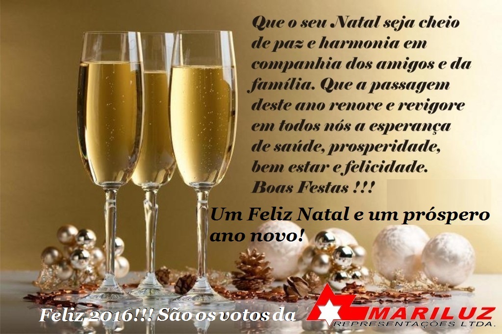 A Mariluz Representações deseja a todos um Feliz Natal e um próspero Ano Novo.16 dezembro, 2015By mariluz0 Compartilhe isso:Clique para compartilhar no Twitter(abre em nova janela)Clique para compartilhar no Facebook(abre em nova janela)Curtir isso:Curtir Carregando...