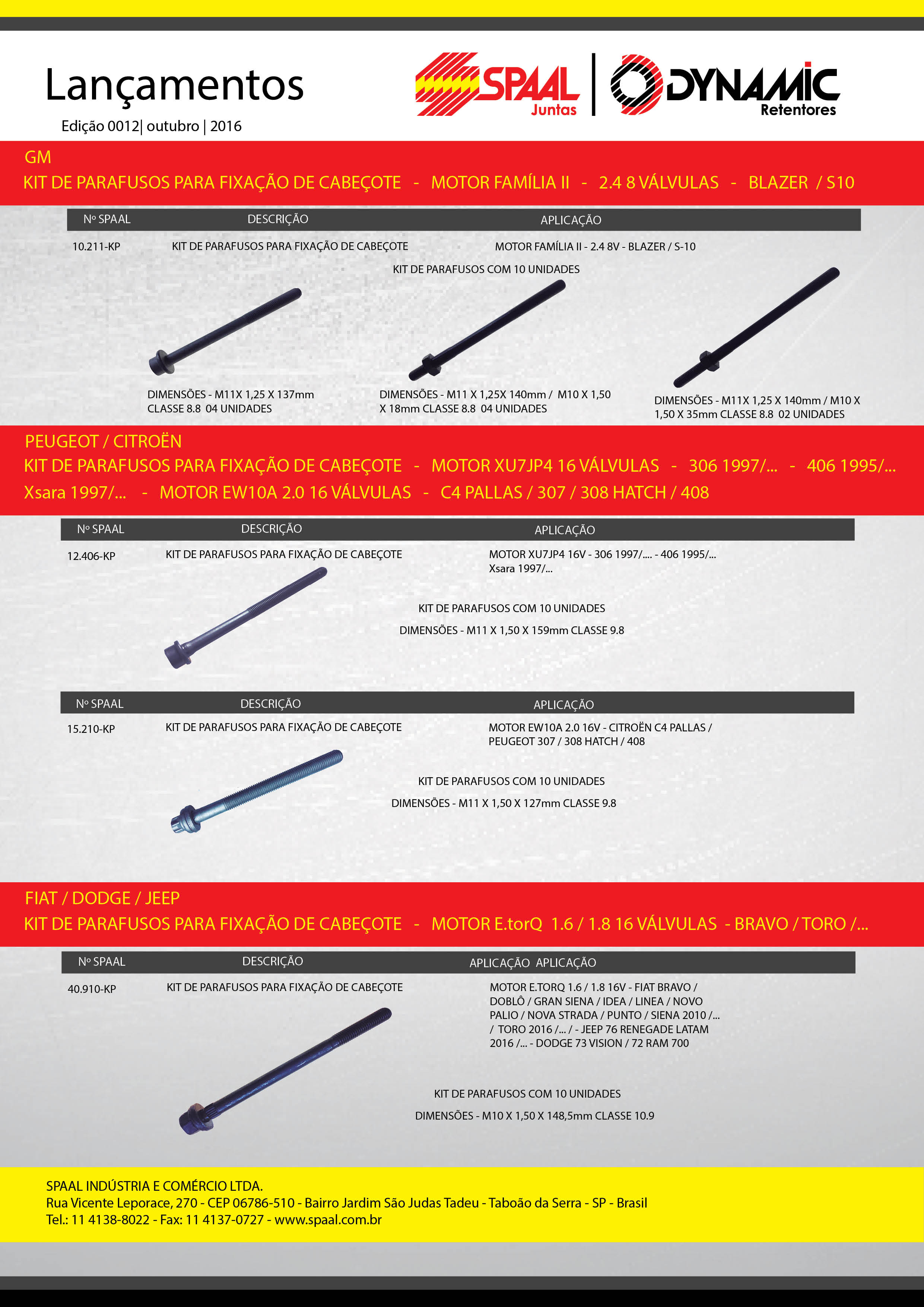 Lançamento Spaal/Dynamic Kit de parafusos para fixação de cabeçotes.