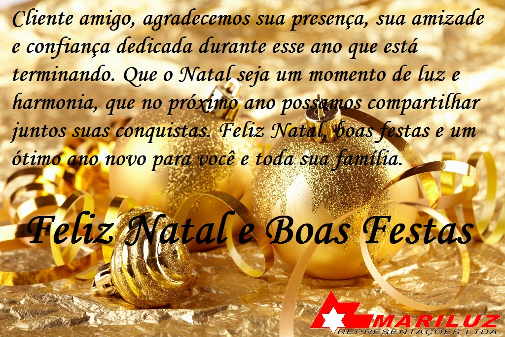 A Mariluz Representações deseja a todos um Feliz Natal e um ótimo Ano Novo.15 dezembro, 2017By mariluz0 Compartilhe isso:Clique para compartilhar no Twitter(abre em nova janela)Clique para compartilhar no Facebook(abre em nova janela)Curtir isso:Curtir Carregando...